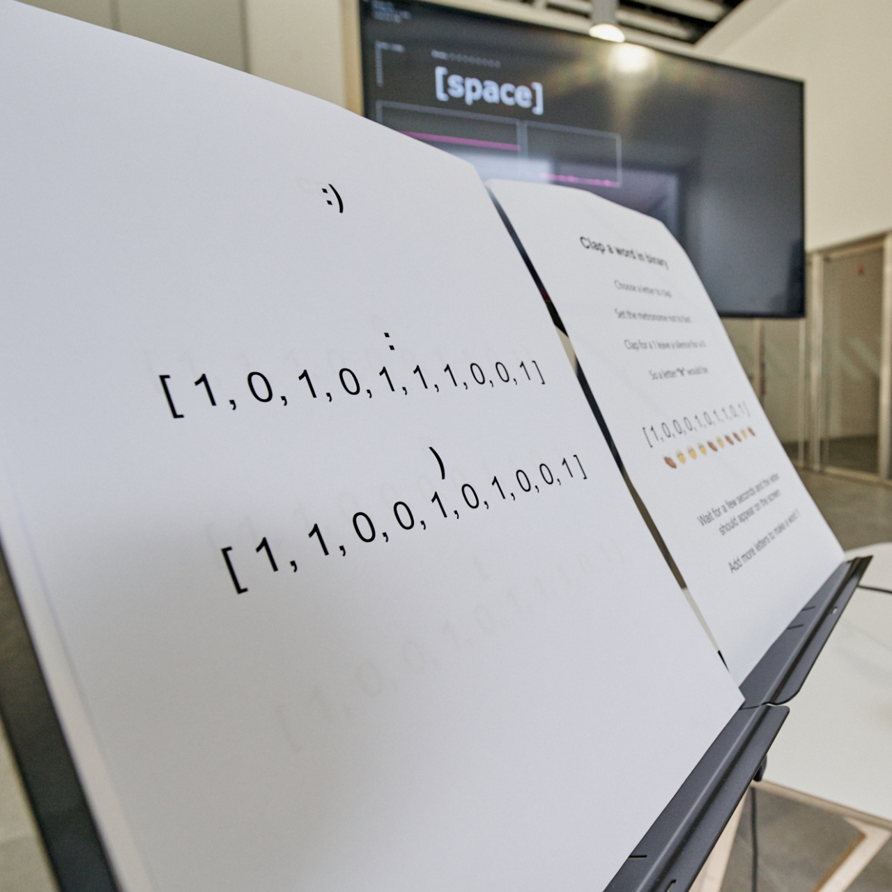 an installation in which an audience produced text by clapping binary patterns