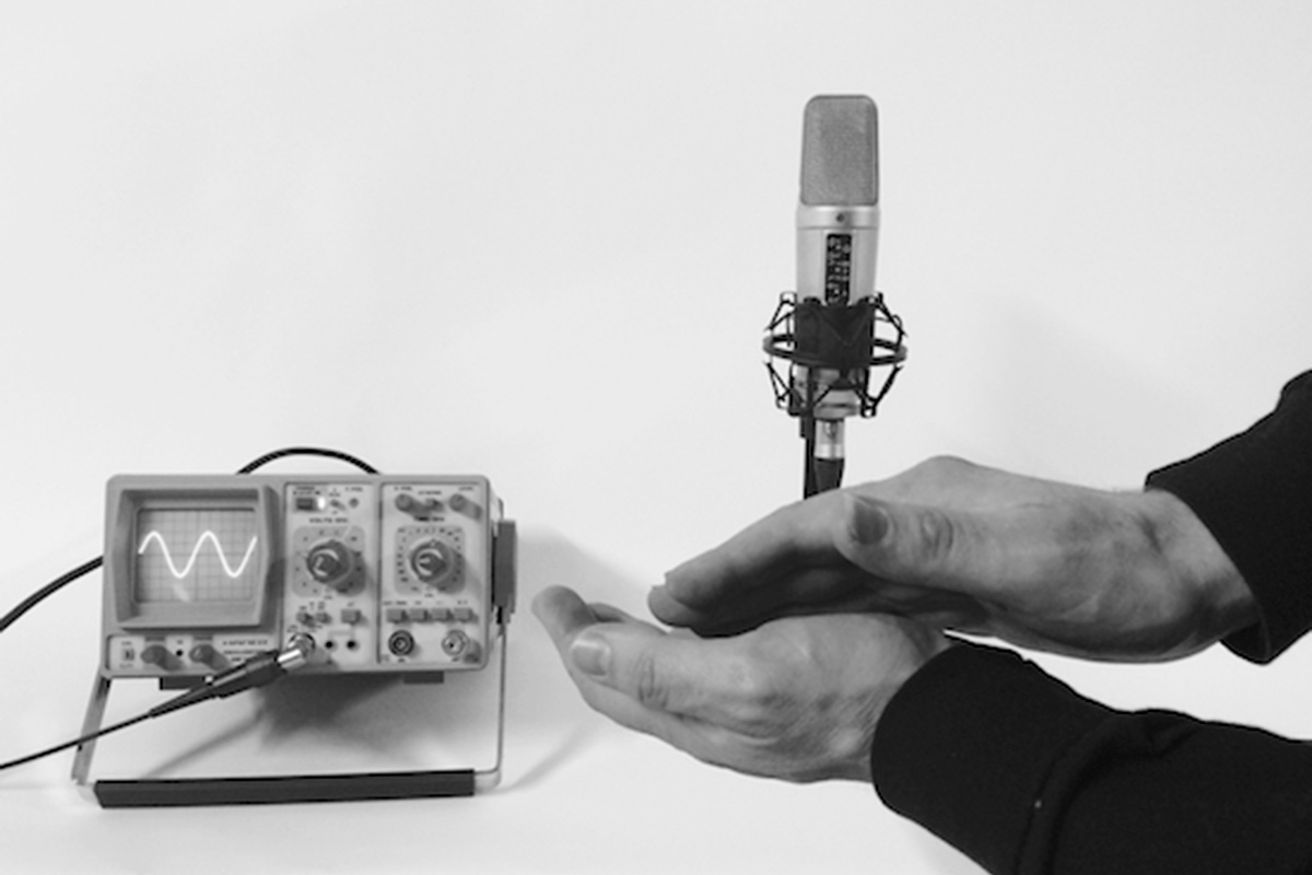 Clapping a sine wave is a performance during which I attempt to clap the binary/digital version of a sine wave. The clapped rhythms are interpretted by software and converted in real time into a sine wave.